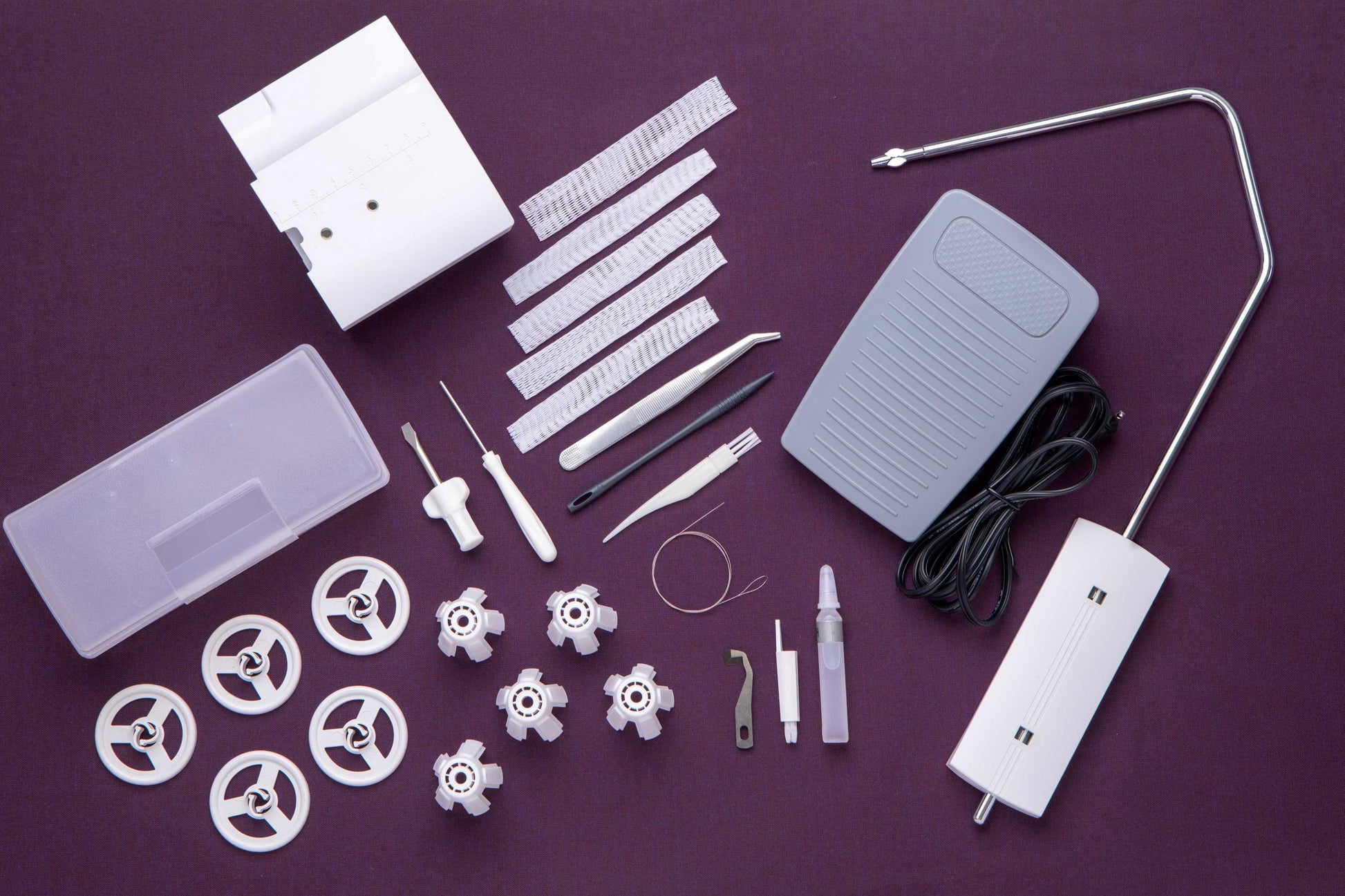 - Spool holders (5), spool caps (5) and thread nets (5)