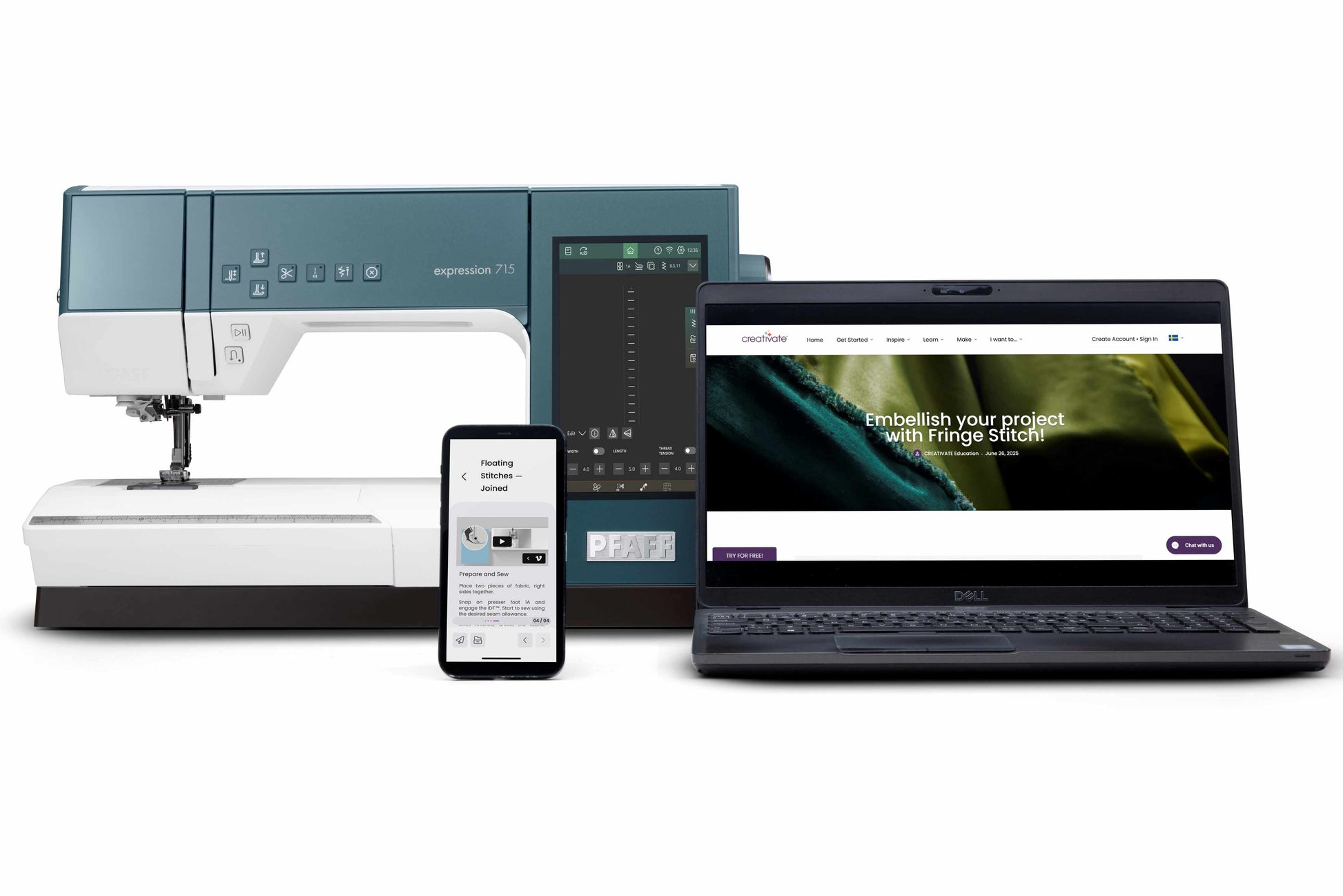 The PFAFF® quilt expression™ 715 is a refined computerized sewing machine designed for sewists who demand reliability, intuitive operation, and creative flexibility. Launched alongside the more advanced models 725 and 750, this entry model in the new expression™ line shares the same premium build quality and sleek, modern aesthetics.