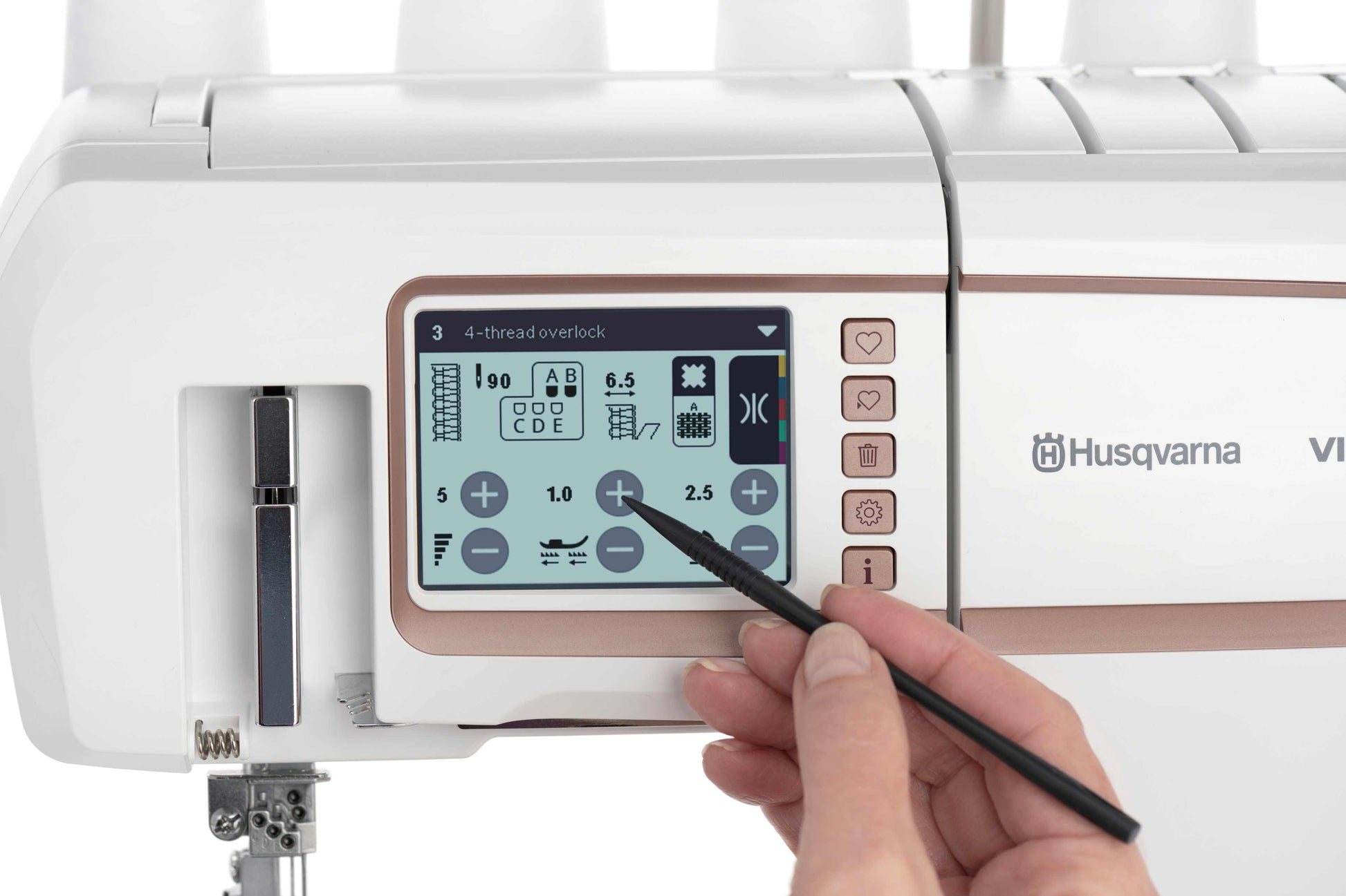 With this patented feature, you can easily fine-tune the amount of overedge thread so stitches always form neatly along the fabric edge for optimal results.